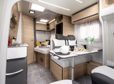 The Siena 330 is the ideal semi-integrated for those who want an agile but complete camper. With a length of 5.99 meters , it offers a transverse rear double bed , a convivial dinette and a compact but functional bathroom. The lateral kitchen is well equipped, while the organization of the internal spaces guarantees comfort and habitability even in a vehicle of small dimensions. Perfect for two people or small families, the Siena 330 is available on a Citroën or Peugeot base, combining easy handling and reliable performance.